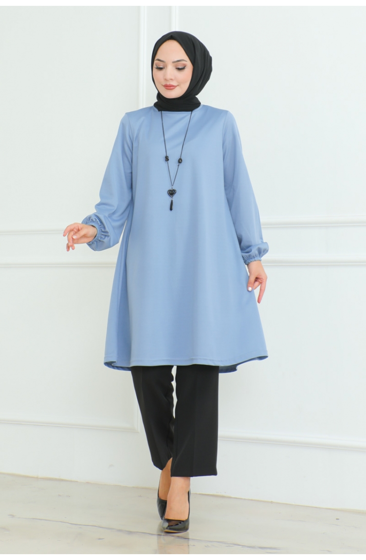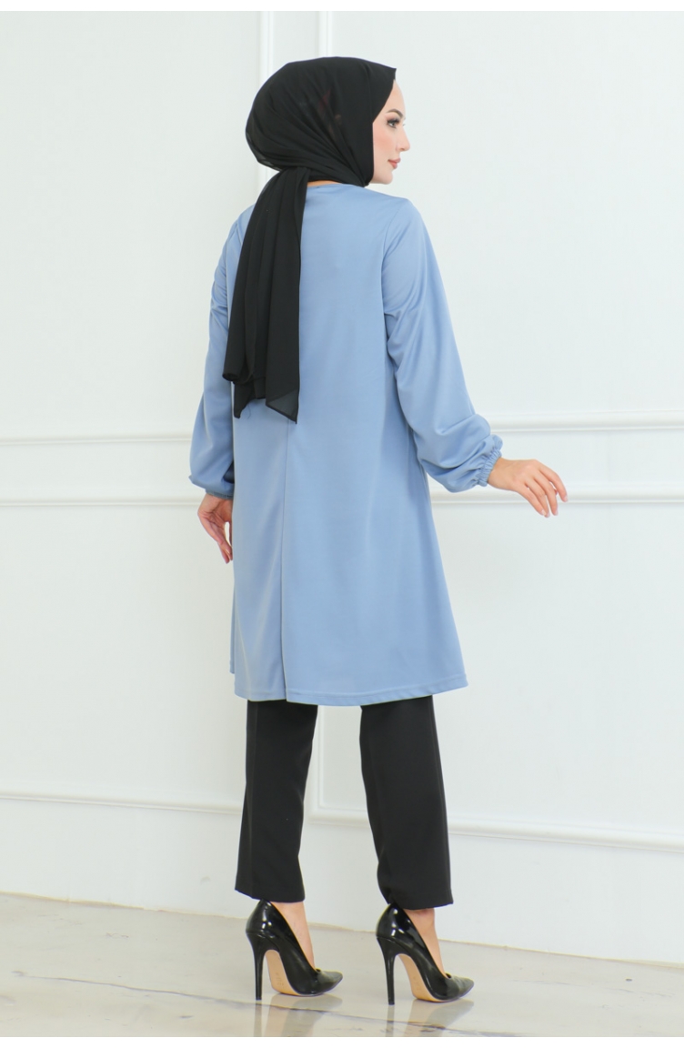 Oversize Krep Tunik 43-02 Bebek Mavisi
